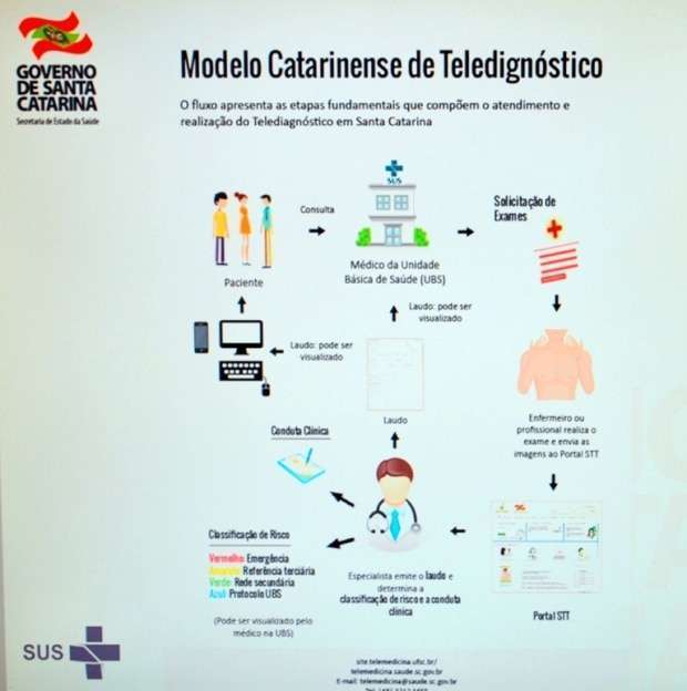 “Isso tudo depende do desenho que vai ser dado para pela rede”, explicou. O equipamento foi apresentado pelo representante da UFSC, Harlei Miguel Wagner, que apresentou o modelo catarinense de Telediagnóstico, explicando que quando dependendo do resultado do exame, se dá mais agilidade aos procedimentos mais graves.